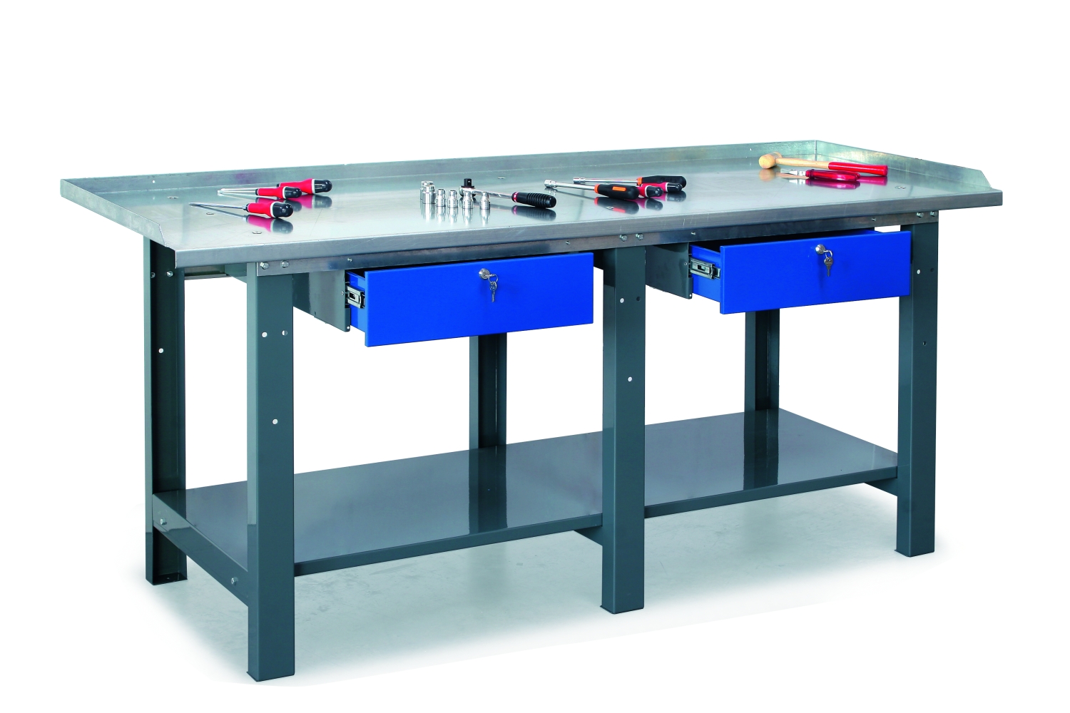 Il constitue un bon choix pour votre espace de travail, grâce à son excellente qualité, sa stabilité et sa polyvalence. Ses deux tiroirs, notamment, permettent un rangement complet de tous les outils.